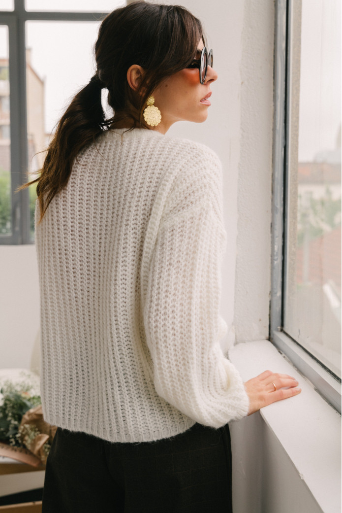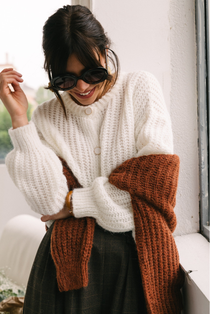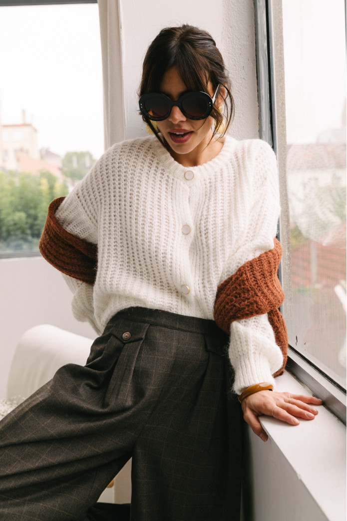 - Gilet en alpaga et laine à manches longues