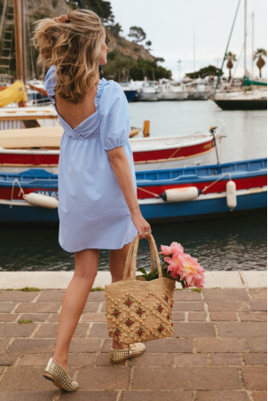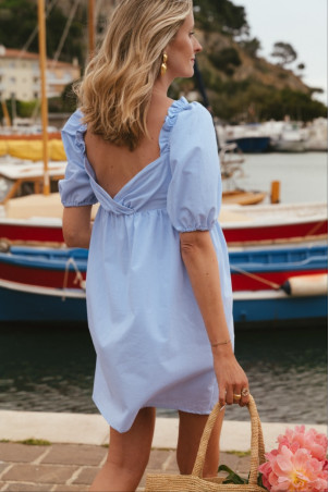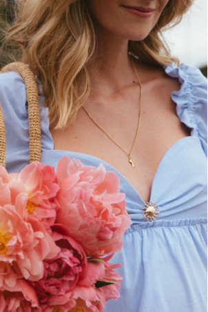 - Encolure coeur ornée d'un bouton doré décoratif soleil