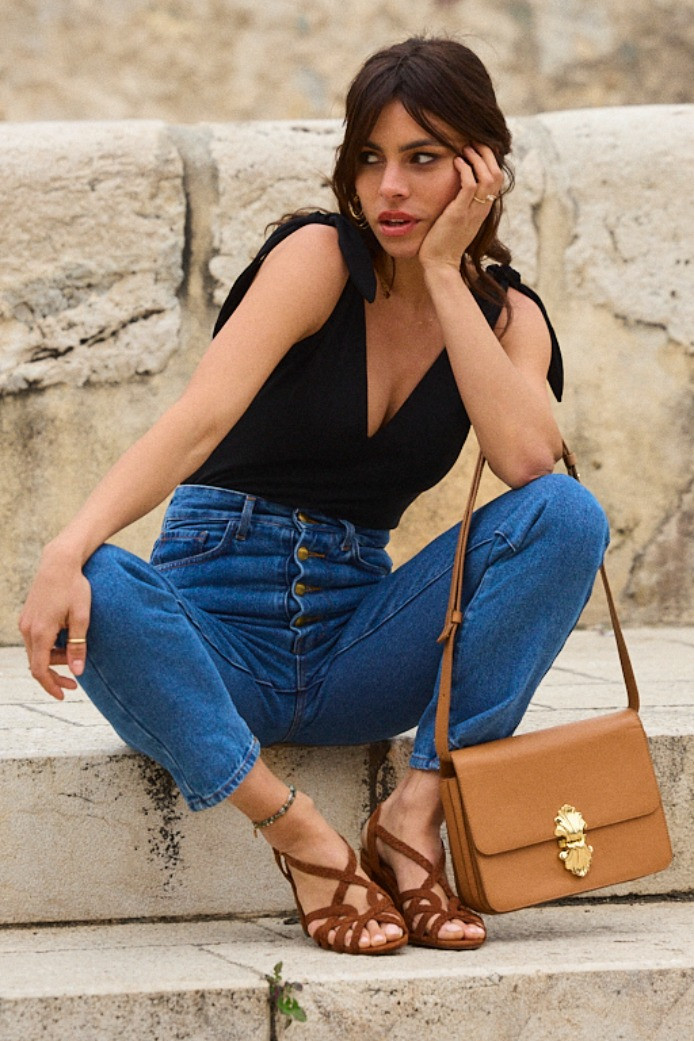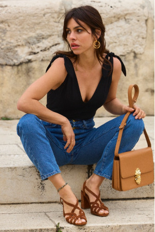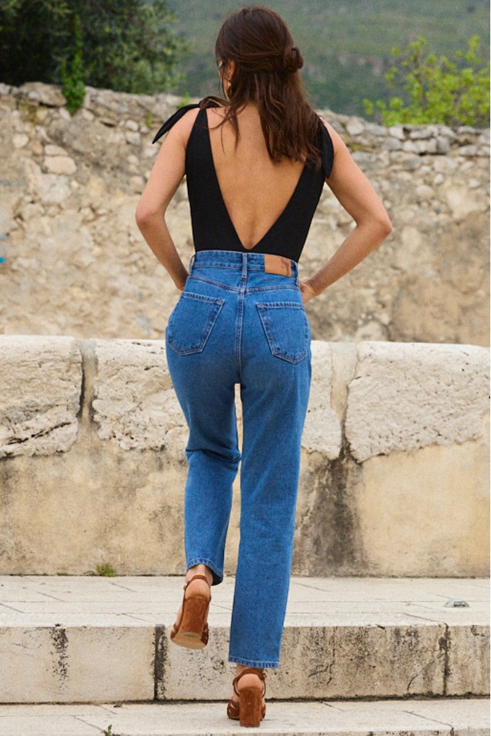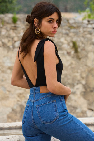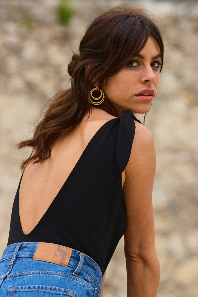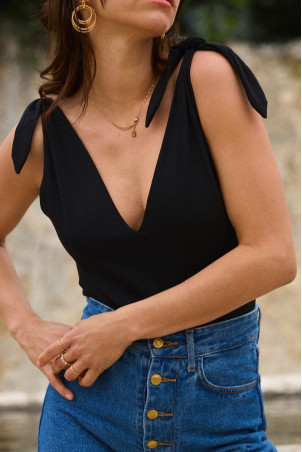 - Décolleté V plongeant sur le devant