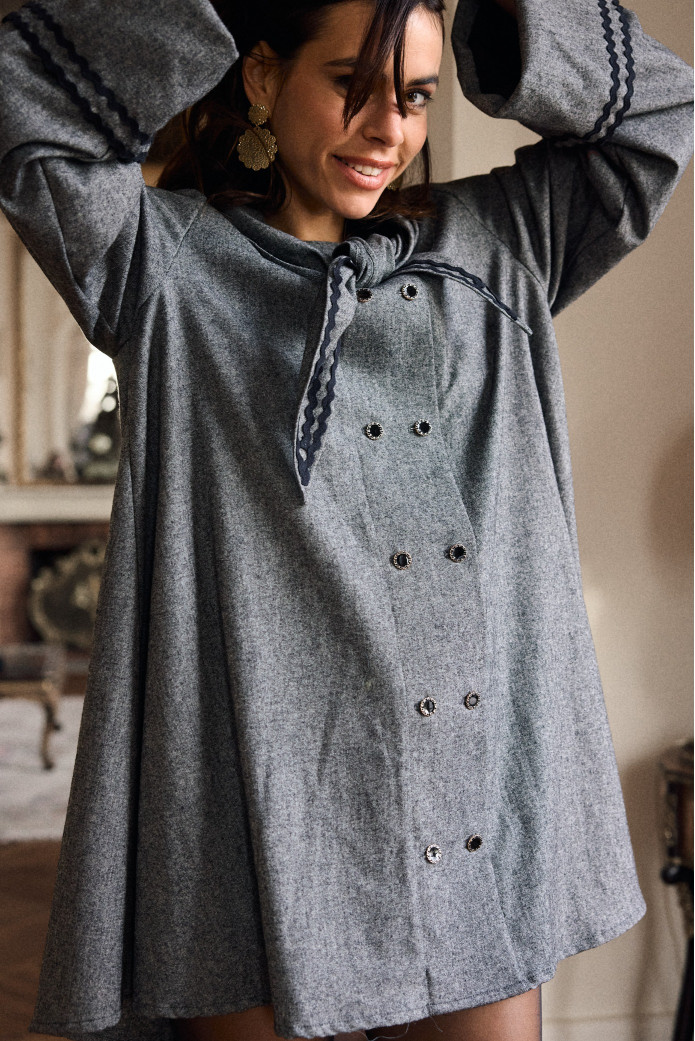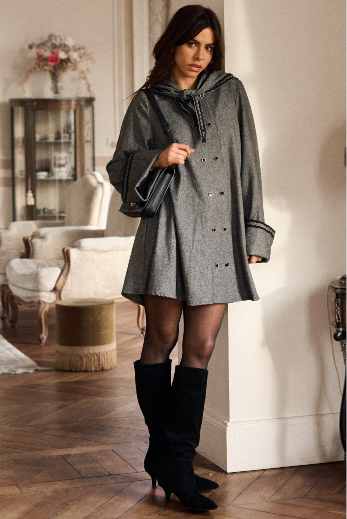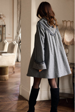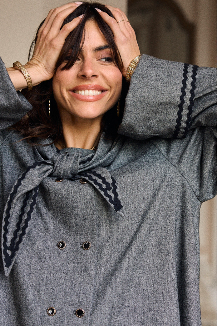 - Larges revers bas de manche et foulard soulignés par deux rangées de serpentin contrasté
