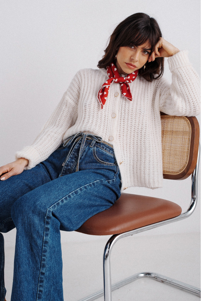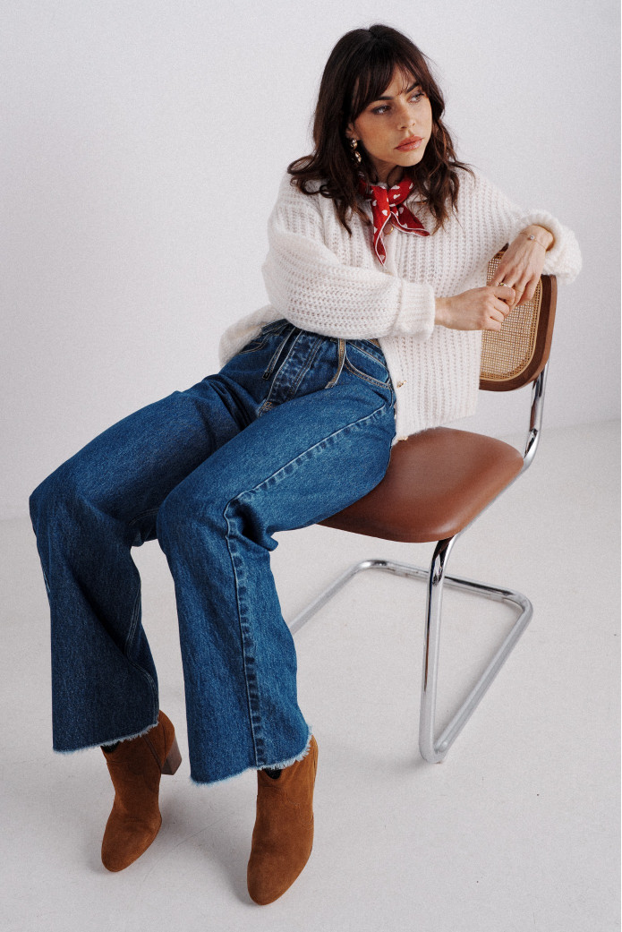 - Gilet en alpaga et laine à manches longues