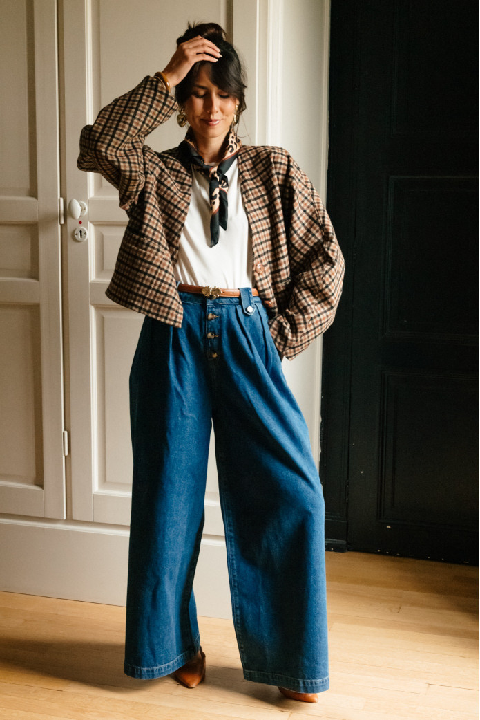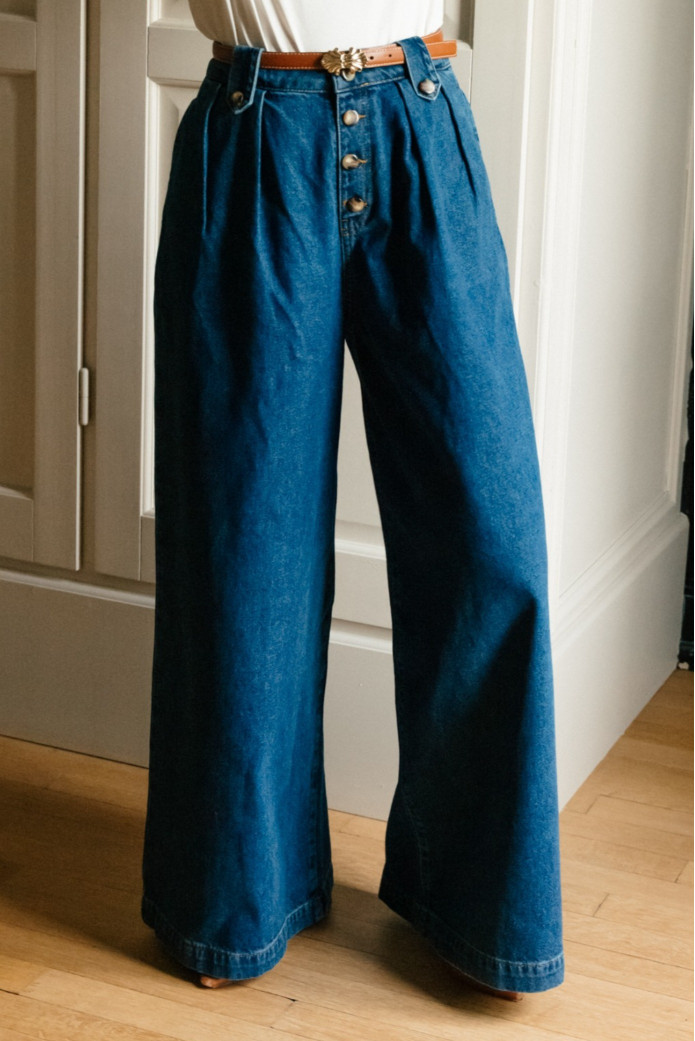 - Pantalon taille haute droit large