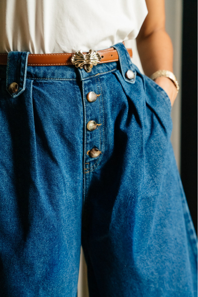 - Ceinture droite avec passants rehaussés d'un bouton